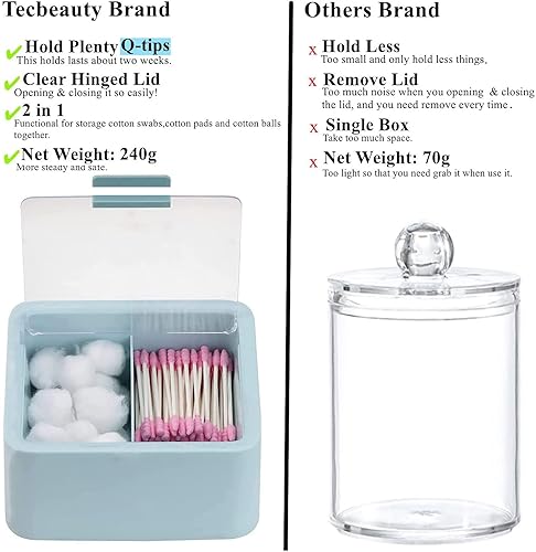 Tecbeauty Distributeur de cotons-tiges à 2 compartiments avec couvercle pour salle de bain Blanc
