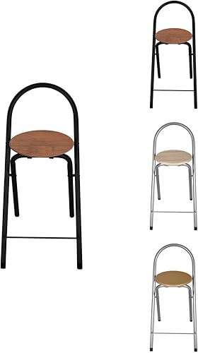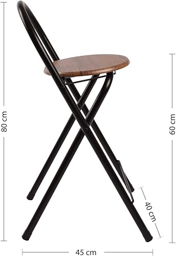 JARDIN202 - Tabouret pliant élégant et durable avec repose-pieds, idéal pour la cuisine Noir et argenté 80 x 40 x 45 cm