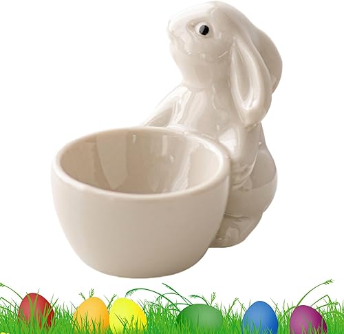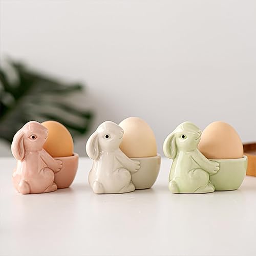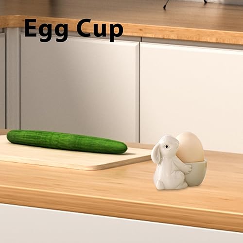 Geonoy Coquetier Lapin en Céramique, Coquetiers en Porcelaine pour Support à Oeufs Durs ou Mous, Coquetier Lapin de Pâques, Coquetier Amusant pour Décoration de Table de Pâques