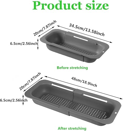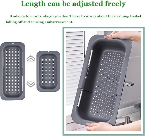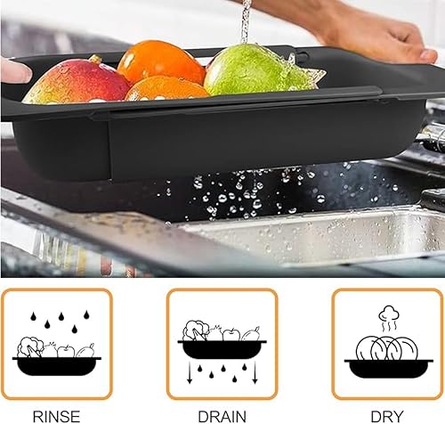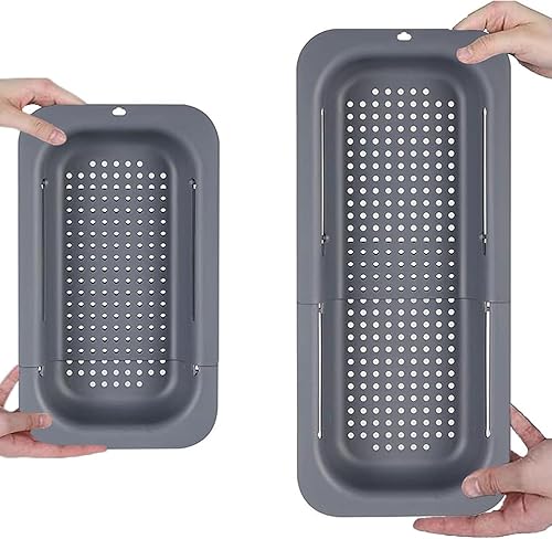 UQMIQURA Passoire pour évier, panier extensible au-dessus de l'évier 34,5 à 48 cm, support de filtre de lavabo, passoire de cuisine extensible, passoire d'évier, idéale pour laver les légumes et les