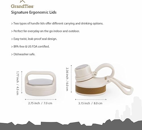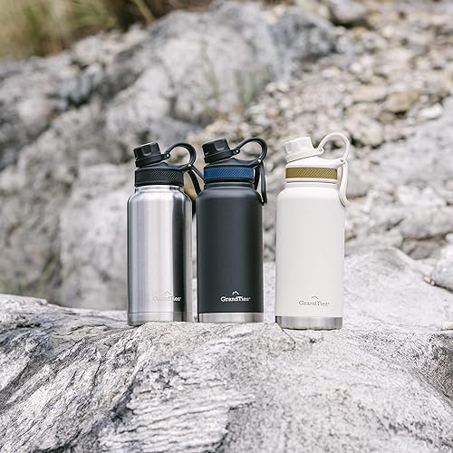 GrandTies Bouteille d'eau de voyage de 950 ml - Large ouverture isotherme sous vide avec deux couvercles style - Bouteille d'eau froide pour homme, femme - Blanc ivoire
