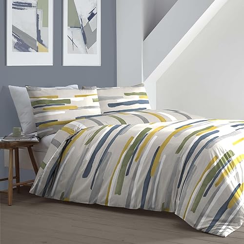 Fusion - Housse de Couette à Rayures Nautiques Bleues - 200 x 200 cm - 2 taies d'oreiller - Housse de Couette Bleue contemporaine - Parure de lit Gris/Bleu Sarcelle - Literie Bleu Sarcelle à Rayures