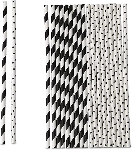 ECOFIESTA 240x Pailles en carton 20 cm, Ø 0,6 cm noir et blanc - cocktail accessoire biodégradable decoration plage - paille comestible