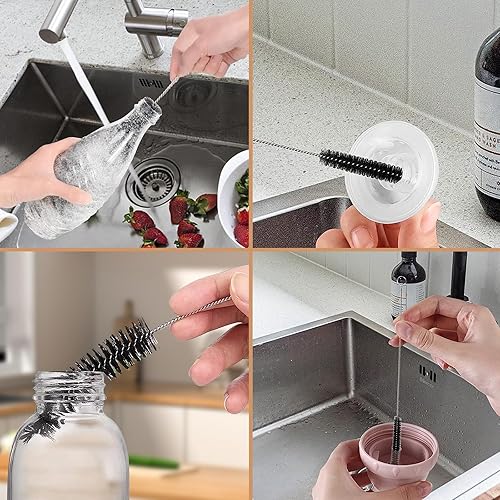 Goupillon, Goupillon Bouteille de Nettoyage pour Nettoyant pour en Verre SodaStream Machines à café, Brosse pour Tuyau à Lait[Lot de 12]