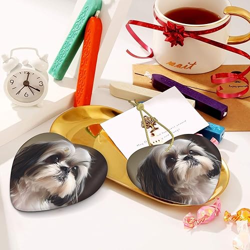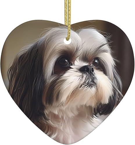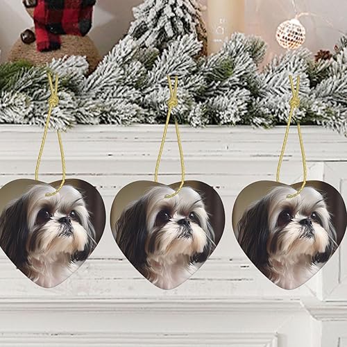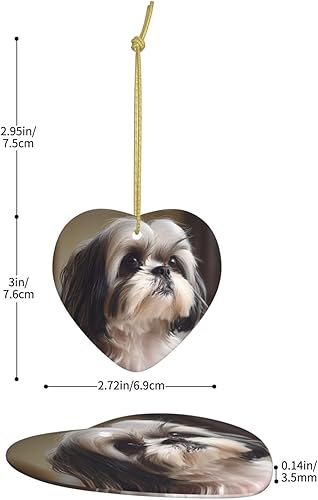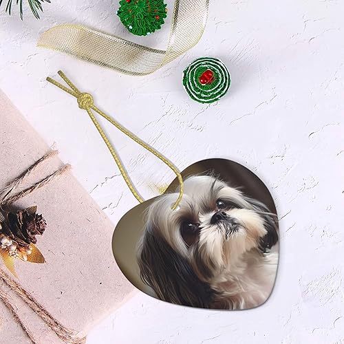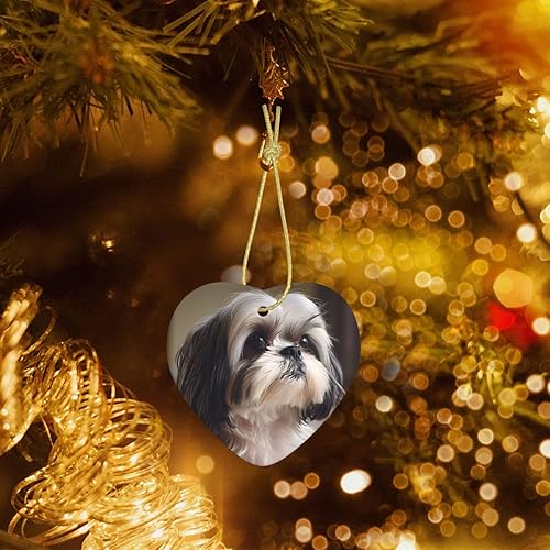 WHJYYXDE Pendentif de Noël en céramique - Décoration festive à suspendre pour centre commercial, maisons, 7,6 x 6,9 cm - Imprimé chien Shih Tzu