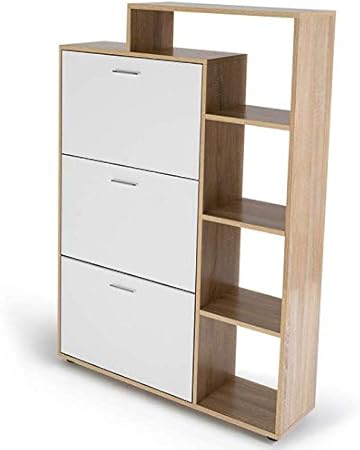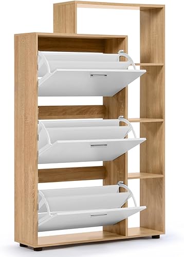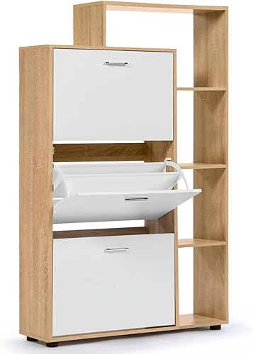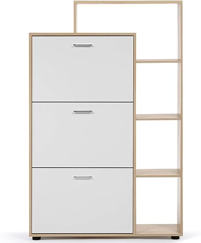 IDMarket - Meuble à chaussures 18 paires KLARK imitation hêtre 3 portes blanches avec étagère