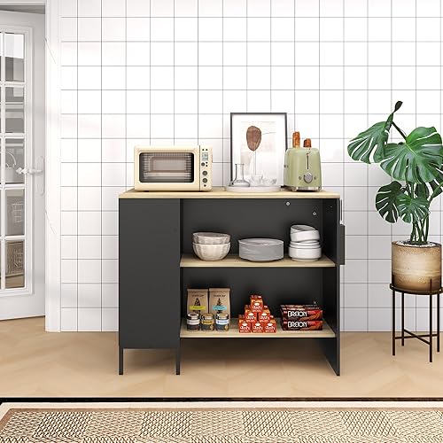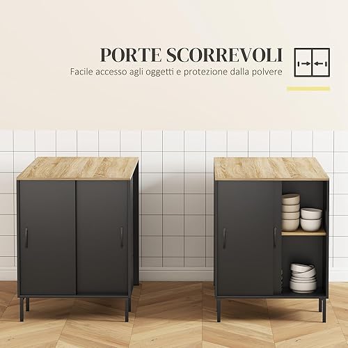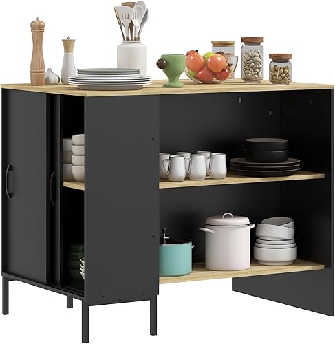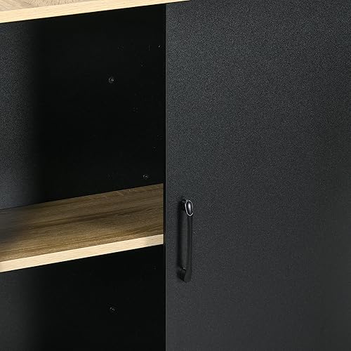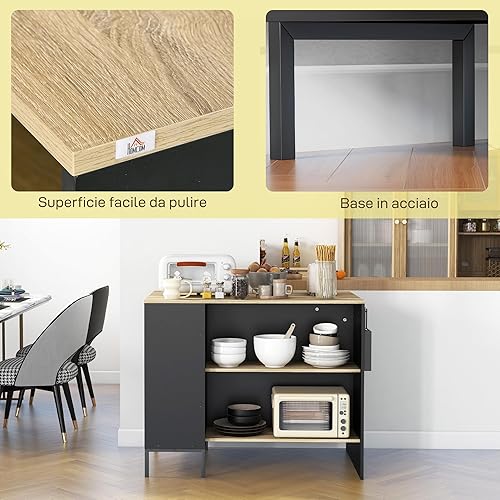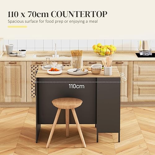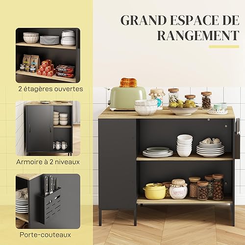 HOMCOM Desserte îlot de Cuisine Meuble de Rangement avec Porte-Couteaux latéral, 2 étagères Ouvertes, 1 Placard avec Portes coulissantes, 114,5L x 70l x 90H cm, Noir