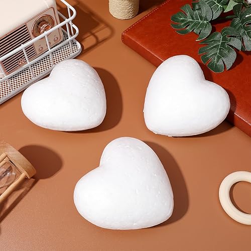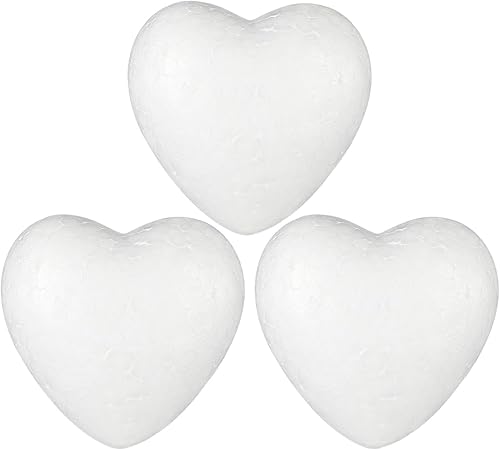 JEWEDECO Lot de 3 boules en polystyrène en forme de cœur de 10 cm pour projets de bricolage, décoration de Saint-Valentin et décoration de mariage, cœurs à créer et décorer