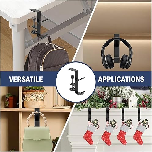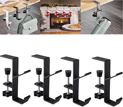 Lot de 4 supports de cheminée réglables pour guirlande de cheminée, double porte, crochets réglables pour chaussettes de Noël et guirlandes à suspendre (noir, 4 pièces)
