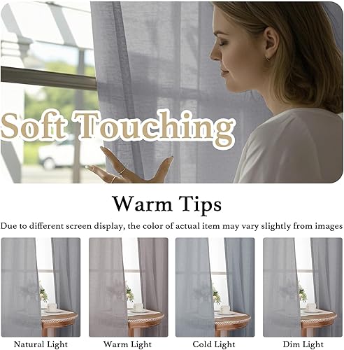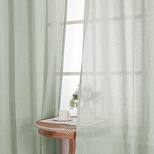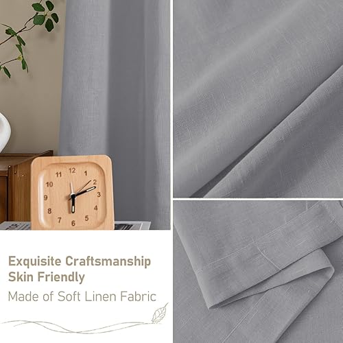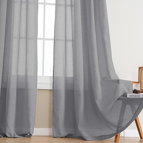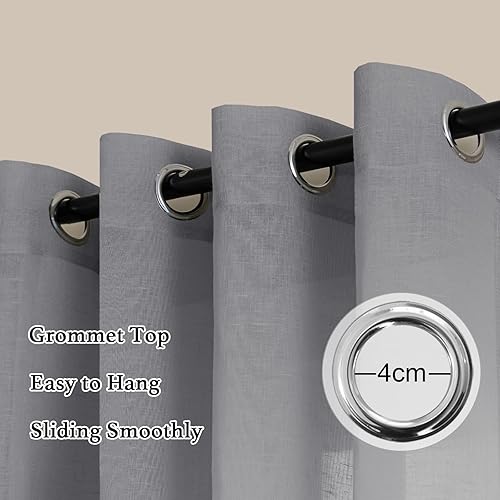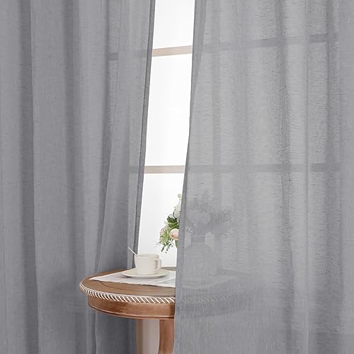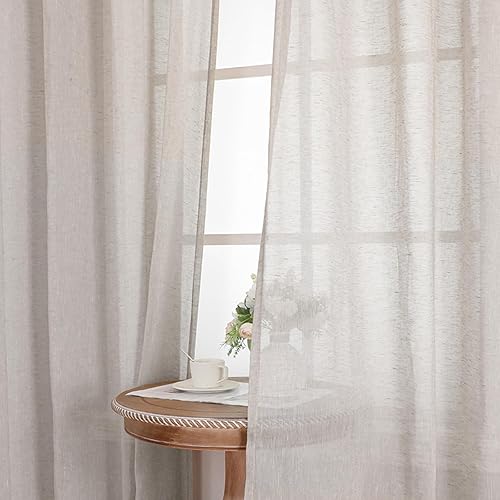BellaHills Rideaux et Voilages,Rideaux en Lin Transparents avec Oeillets,pour Salon Bureau 2 Panneaux,Blanc,140x230cm