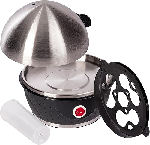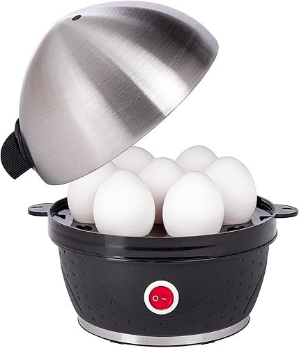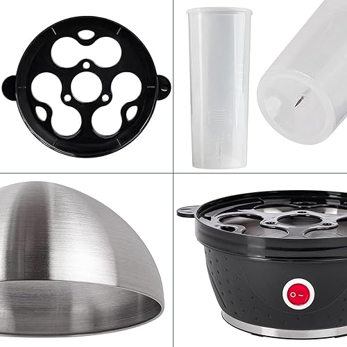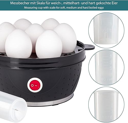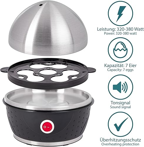 Slabo Cuiseur à œufs électrique en acier inoxydable | 1 œuf - 7 œufs | Protection contre la surchauffe intégrée | Témoin lumineux | Verre doseur avec aide à la piquer | 380 W - Noir