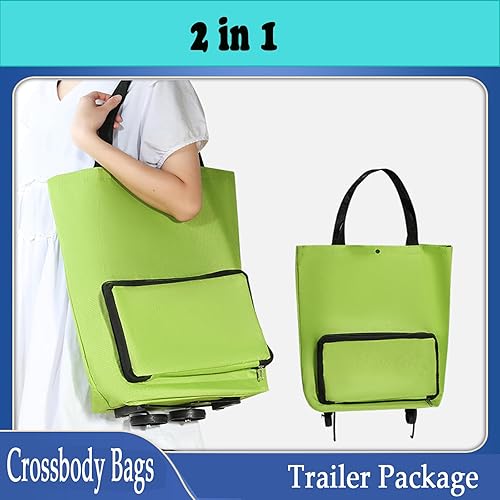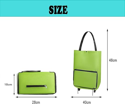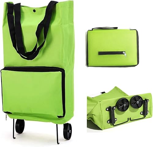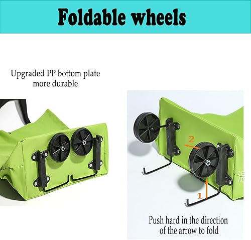 Chariot de courses avec roulettes, chariot de courses pliable, panier de supermarché, sac de courses réutilisable (vert)