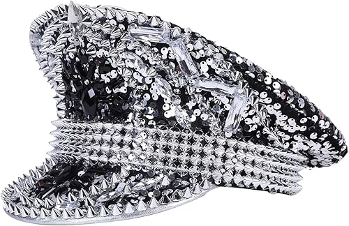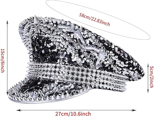 QBJMY Chapeau de Capitaine Noir Gothique Punk à Paillettes, Costume de Carnaval d'halloween, Chapeau de fête for Festival de Musique Burning Man