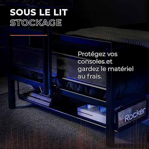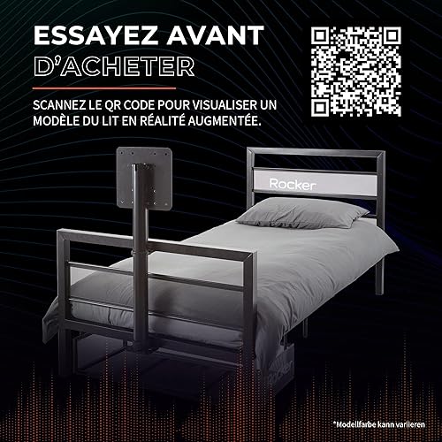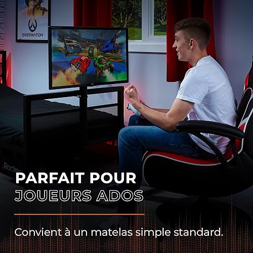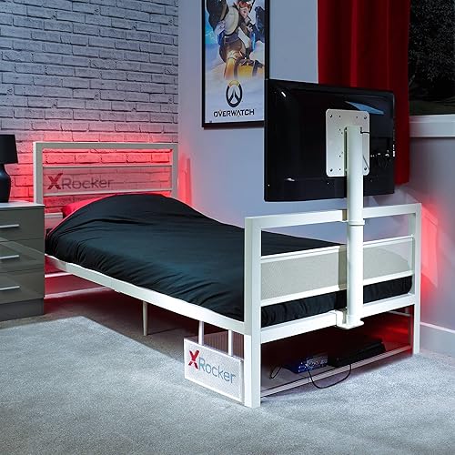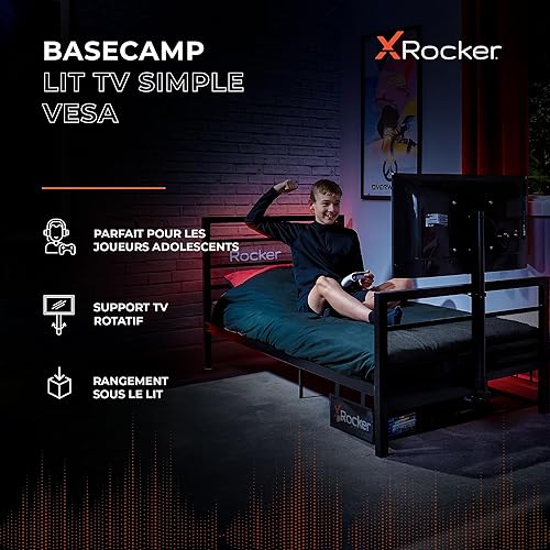 X-Rocker Basecamp Lit de Jeu TV avec Support Rotatif, Rangement et Gestion des câbles, lit Simple Twin de 0,9 m, Cadre en métal, idéal pour Chambre d'enfant, TV jusqu'à 40' - Noir