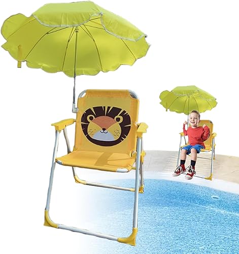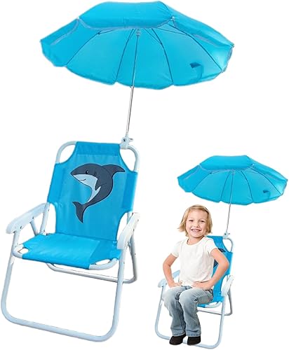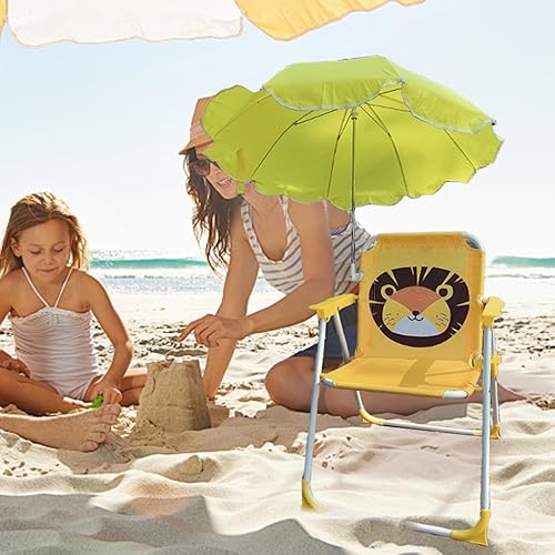 Chaise de Plage Enfant avec Parasol - Chaise Pliante Enfant avec Protection Solaire | Siège Résistant au Vent et Stable sur Le Sable pour Voyage, Jardin, Piscine et Pique-Nique en Extérieur