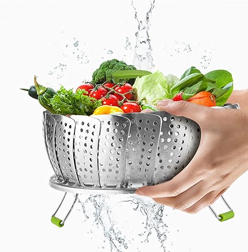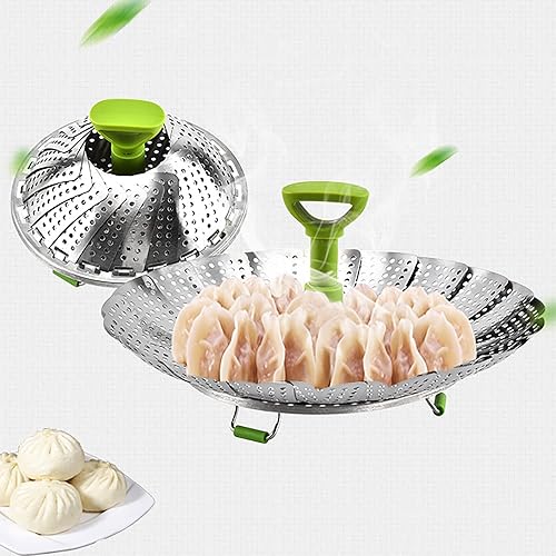 SANON Panier vapeur, paniers cuit-vapeur pliable en acier inoxydable pour légumes et fruits de mer, panier vapeur inox