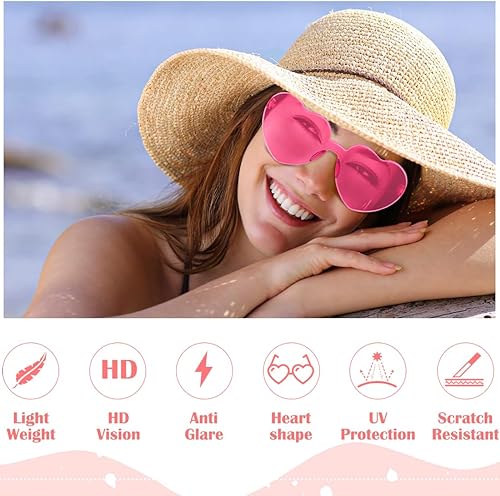 EIHI Lot de 2 paires de lunettes coeur en forme de cœur hippie rétro, Enterrement de vie de jeune fille, Lunettes de Noël amusantes, Pour fête d'anniversaire, Pour enfants et adultes