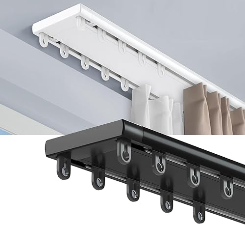 Double rail de rideau, rail de plafond en aluminium rail de rideau rail de rideau lourd, approprié pour le salon salle de bains chambre à coucher cloisonné rail de plafond Kit,White-2.8m