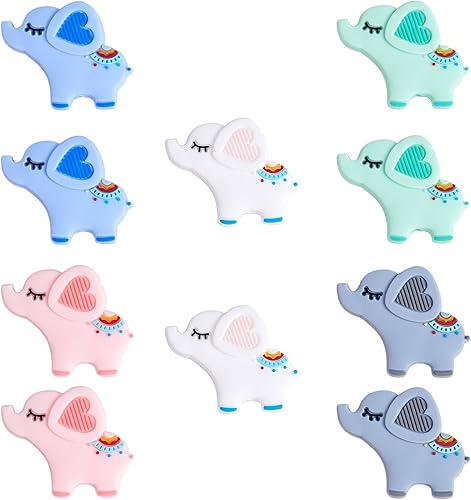 WEWAYSMILE 10pcs Fabrication Perles Rondes en Silicone, Silicone Perles Rondes, Pfabrication de Perles Rondes en Silicone, pour Bijoux Artisanat Collier Bracelet (Éléphant)