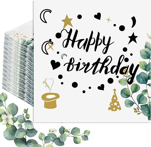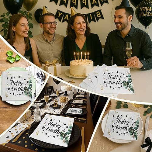 Nexum Lot de 80 serviettes d'anniversaire Happy Birthday Eucalyptus 33 x 33 cm