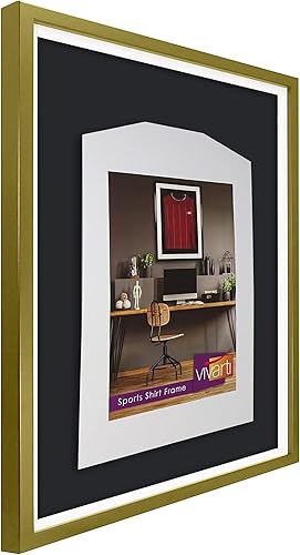 Vivarti Cadre doré pour maillot de sport à faire soi-même - 50 x 70 cm - Cadre doré, cadre intérieur blanc, dos noir