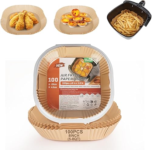 Paktalk Papier cuisson air fryer,100 feuilles 20-24cm antiadhésif imperméable et huileux,idéal pour ninja philips air fryer et four 5 à 8 litres