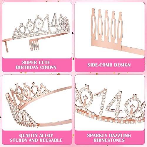 Mumjooyi Ceinture Couronne Bougies Ballons pour 14 Ans Anniversaire Fille - Cadeau et Deco pour Adolescents