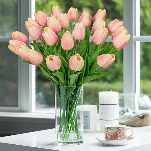 Hollyone Lot de 24 tulipes artificielles - Fleurs artificielles - Pour salle de bain - Décoration d'intérieur - 1