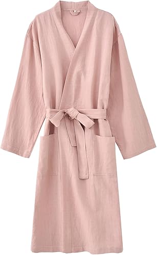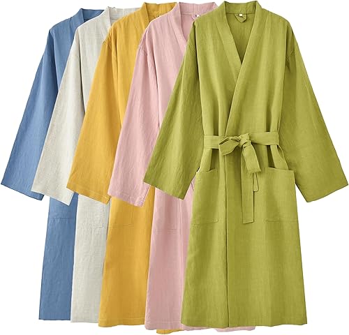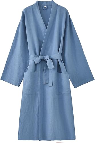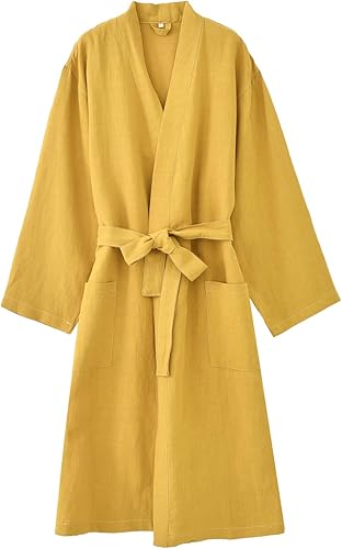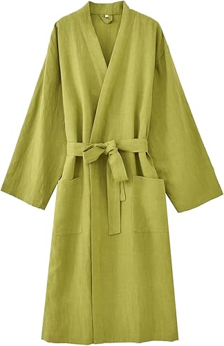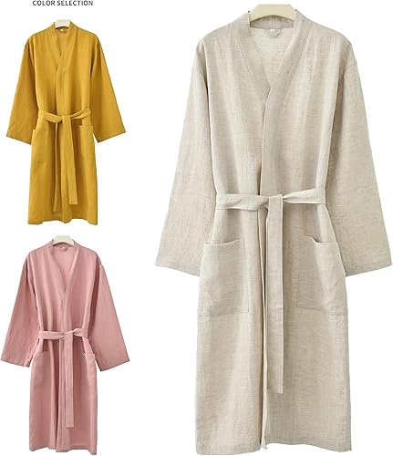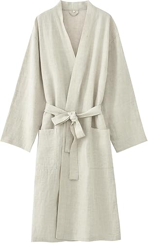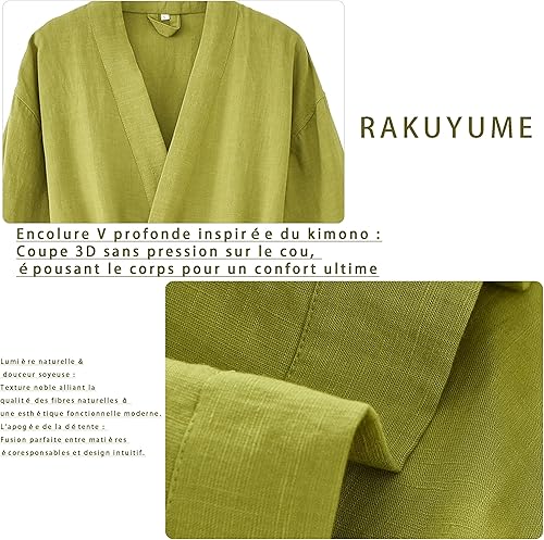 RAKUYUME Peignoir de Bain Femme Homme Unisexe en Lin & Lyocell - Confort Doux Style Kimono pour Couple respirable été