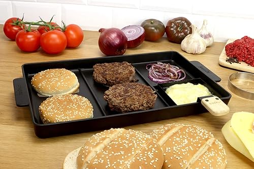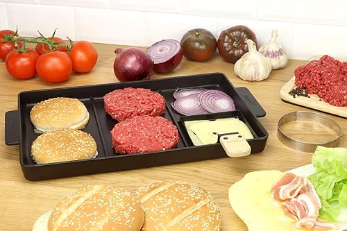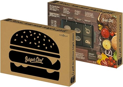 COOKUT - Grill Burger Chef - pour préparer de délicieux Burgers Maison - Jusqu'à 3 Burgers en 5 Minutes - Facilement Lavable - Compatible Tous Feux et même Barbecue, Noir