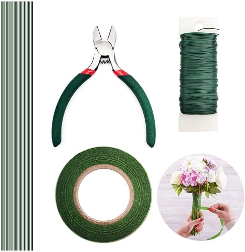 YLX Fleuriste Ruban Vert, Fil de Fleur, Fil de Fer Fleur et Ciseaux de Coupe pour Bouquet Tige Wrap Fleuriste