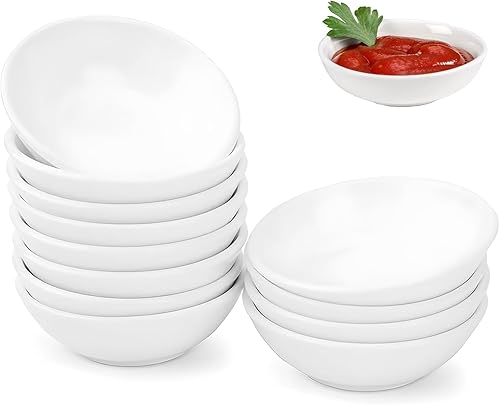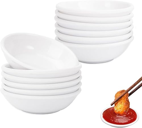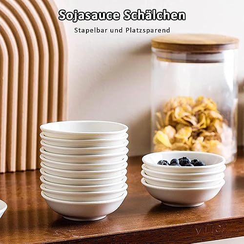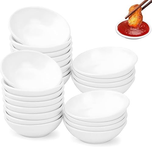 Bols à Sauces, 24 Pièces Bols à Trempette Soja, 7,2 x 1,9cm Mini Vaisselle à Trempette, Réutilisable Petit Assiette à Sauce, Rond Fruits Assiette, pour Accompagnements, Fruits et Dessert, Blanc