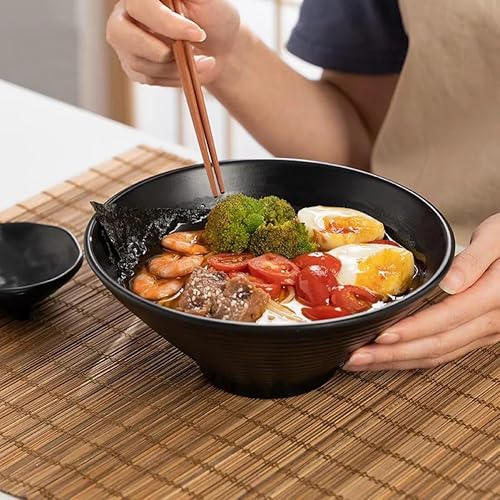 Ensemble De 5 Grands Bols Ramen De Style Japonais, Grands Bols Noirs pour Soupe Pho Thai Miso Udon, Nouilles Ou Plats Asiatiques, Bols en Mélamine