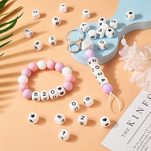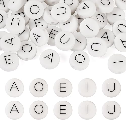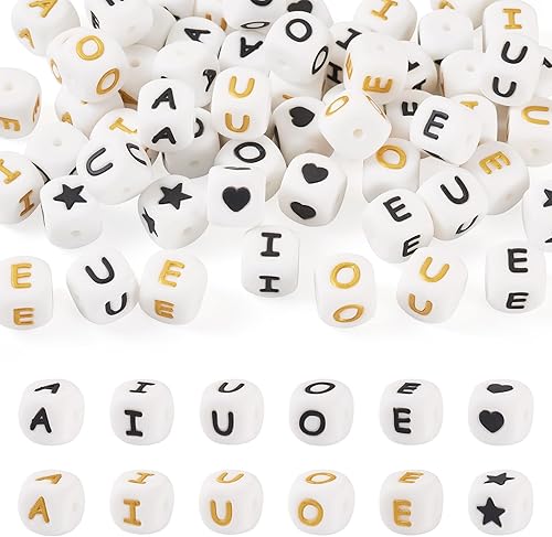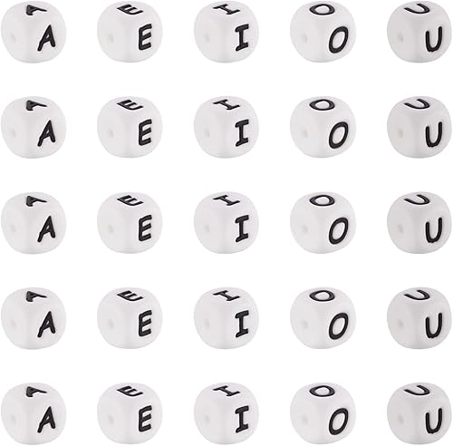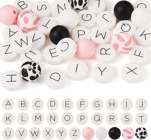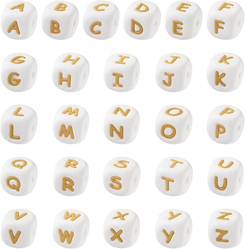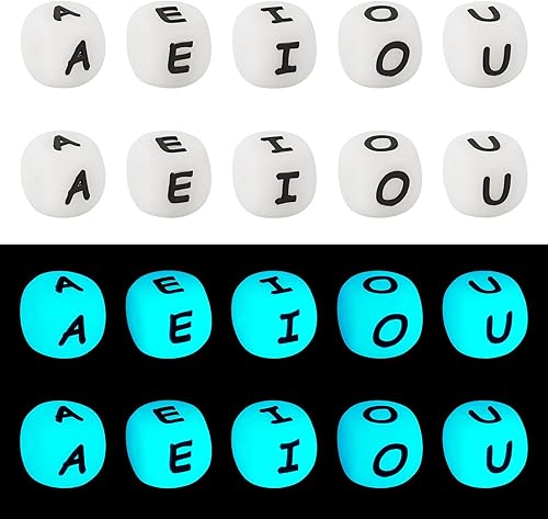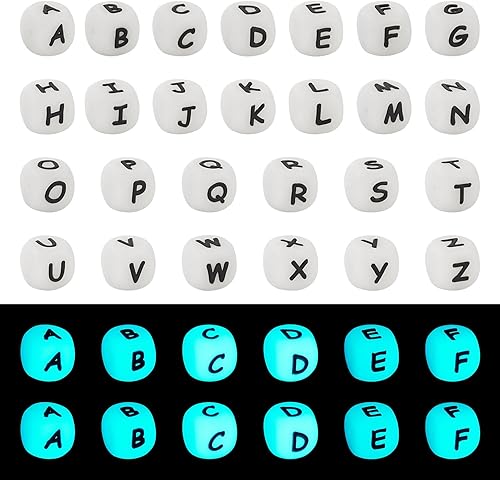 Spritewelry Lot de 52 perles lumineuses en silicone avec lettres de l'alphabet phosphorescentes pour fabrication de porte-clés, cordons, bracelets, bijoux