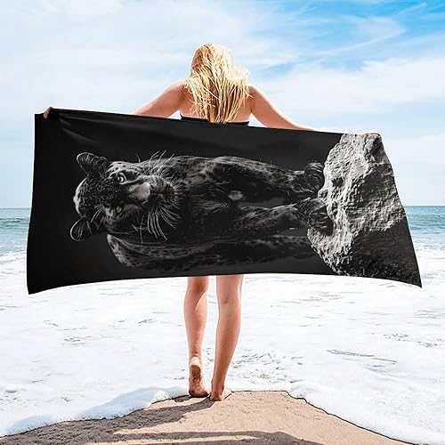 Serviette de Plage Microfibre Femme Homme XL 90 x 180 cm, Séchage Rapide Grandes Serviette La Panthère noire Microfibre Anti Sable pour Extérieur, Plage, Voyages, Natation, Camping, Vacances, Y-482