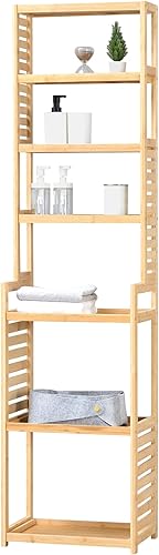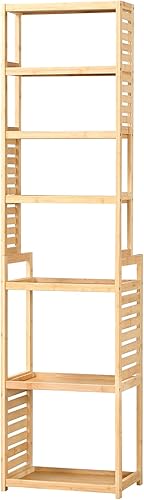 [en.casa] Étagère à 7 Niveaux avec Surfaces de Stockage de Tailles Différentes Meuble de Rangement pour Salle de Bain Cuisine Salon Bambou 165 x 42 x 28 cm Naturel