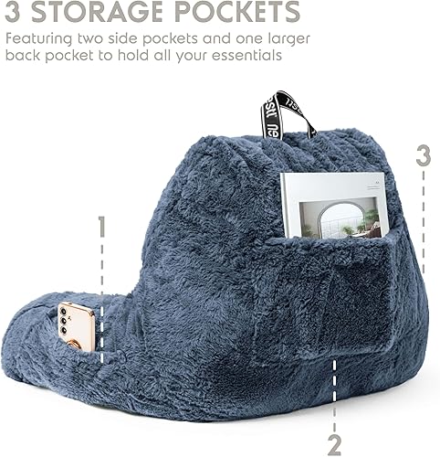 Nestl Oreiller de Lecture en Fourrure, Coussin de Dos élégant pour lit Assis, Coussin de Chaise de lit en Fausse Fourrure avec Bras, Coussin de Lecture pour s'asseoir au lit, Adultes et Enfants,