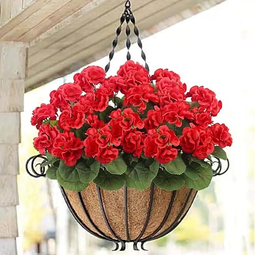 EHOTER Lot De 3 Géraniums Artificiels, Fleurs De Géranium Artificielles, Fleurs Artificielles Réalistes, Décoration De Printemps Décoration Extérieure Et Intérieure (Rouge)