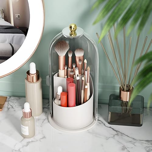 ShawFly Organisateur de Maquillage Rotatif à 360 Degrés Boîte à Maquillage Anti-Poussière Boîte de Rangement Cosmétique avec Couvercle pour Organiser Cosmétiques, Parfums, Bijoux, Produits de Soins de
