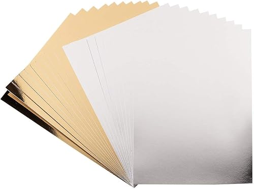 Ideen mit Herz - Lot de 20 feuilles de carton miroir - Papier métallique - Papier de bricolage - Format A4 - 200 g/m² - Argenté et doré clair