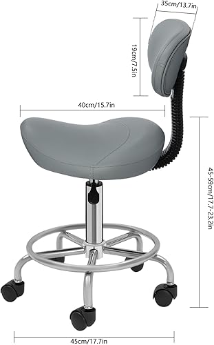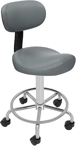 Tabouret de travail, à roulettes, réglable en hauteur, avec roulettes et dossier, rotation à 360 °, siège de selle, chaise de bureau, ergonomique, capacité de charge maximale : 150 kg, gris