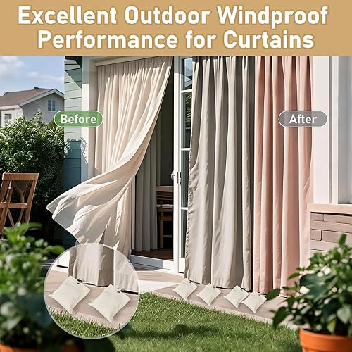 Lot de 8 Sacs Lestés pour Rideaux D'Extérieur, Sac de Poids Portable avec Pinces en Métal, Gestion du Poids du Rideau, Sacs de Poids Autocollants, pour Stabiliser Les Rideaux, Nappes, Drapeaux