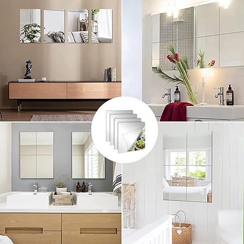 Aidqxbaoer 4 Pièces 15 X 15 cm miroirs muraux en Acrylique incassables,Antidéflagrant Carrés Flexible Miroir Acrylique Adhésif,pour la Maison, l'entraînement,Salle de Sport, Couloir