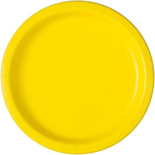 Unique- Boisson Ordinaire Assiettes en Carton Carrées Écologiques-23 cm-Jaune Néon-Paquet de 14, 47046EU, Neon Yellow, Pack of 14