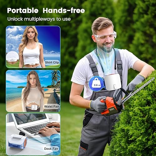 Ventilateur Tee Shirt Portable avec Plaque de Refroidissement, Ventilateur de Cou Ceinture 10000mAh USB Rechargeable, Mini Climatiseur Portable de Taille Puissant 14000 TR/M pour Bureau Voyage Camping