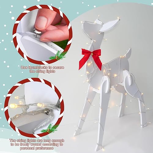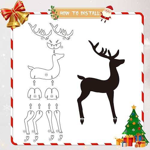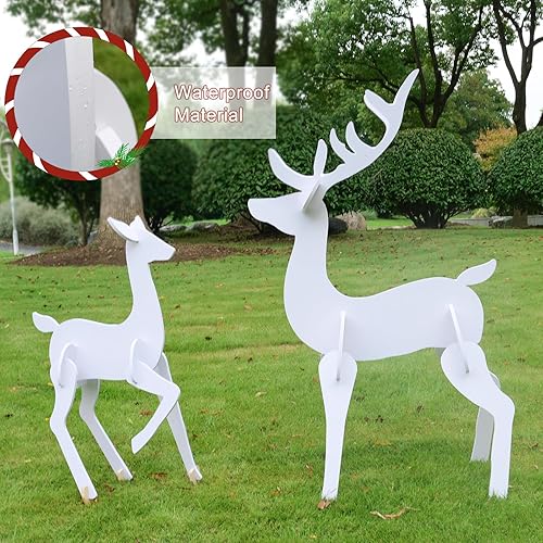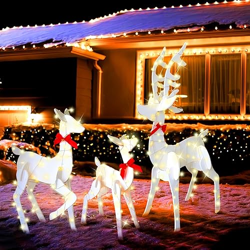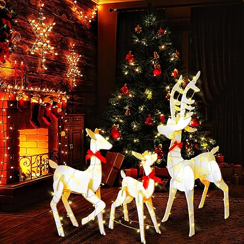 Whemyrat Lot de 3 Déco Renne de Noël Lumineux avec lumières LED,Renne de Noel Exterieur,cerf Lumineux Noel en Bois- Deco Lumineuse Noel Exterieur,cerf Noel,Convient pour Fête,Jardin,Cour