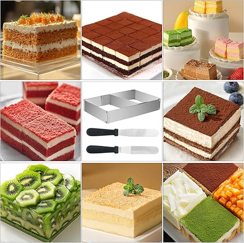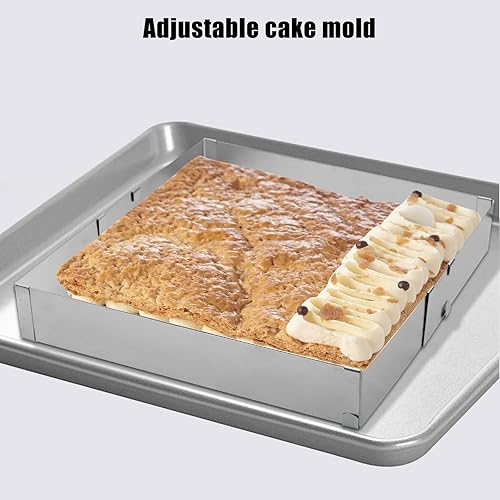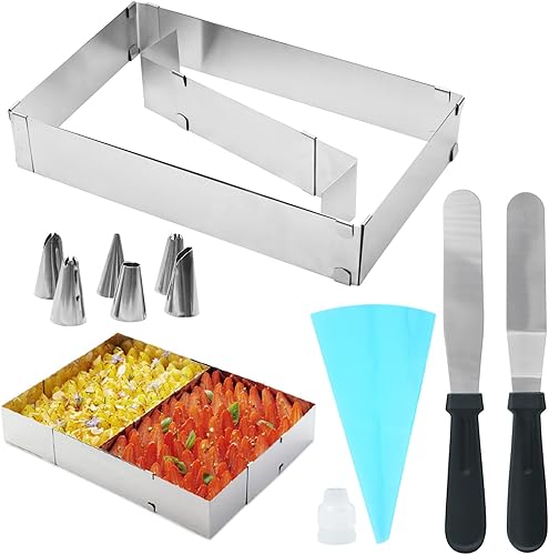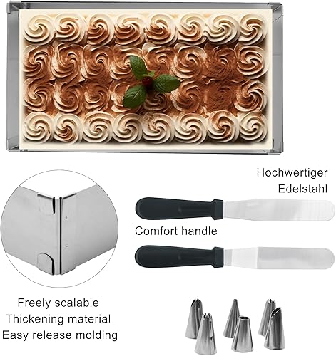 JASFLY Cadre Patisserie Rectangulaire, 28-53cm Acier Inoxydable Moule Rectangulaire Patisserie avec 2 Spatules et Utilisation Répétée Ensemble Buse Décorative pour Gâteaux Desserts