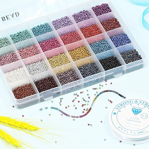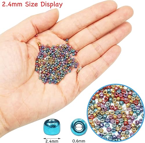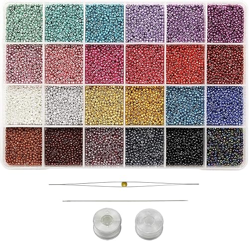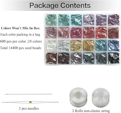 Bala&Fillic 11/0 Perles de rocaille, 24 couleurs 14400 pièces dans une boîte, petites perles pour la fabrication de bracelets, boucles d'oreilles, bracelets de cheville