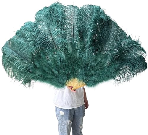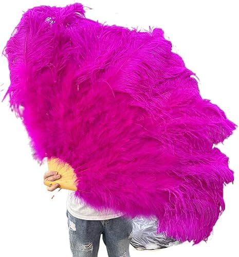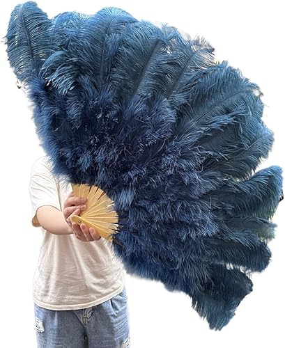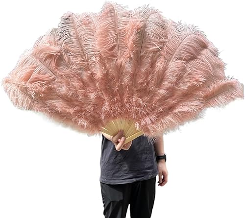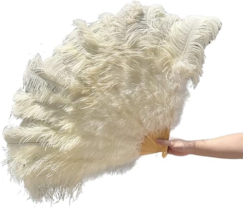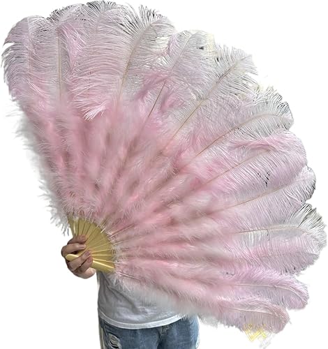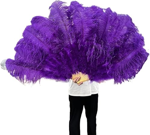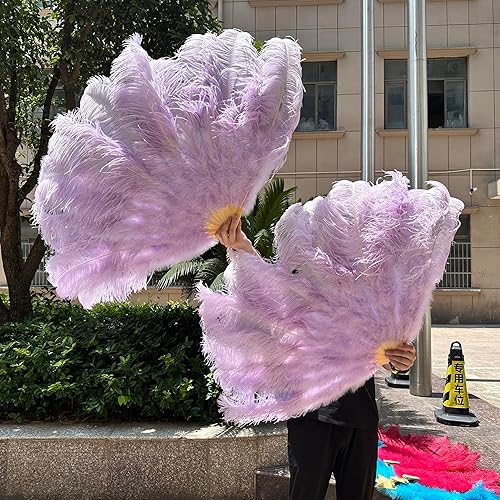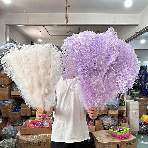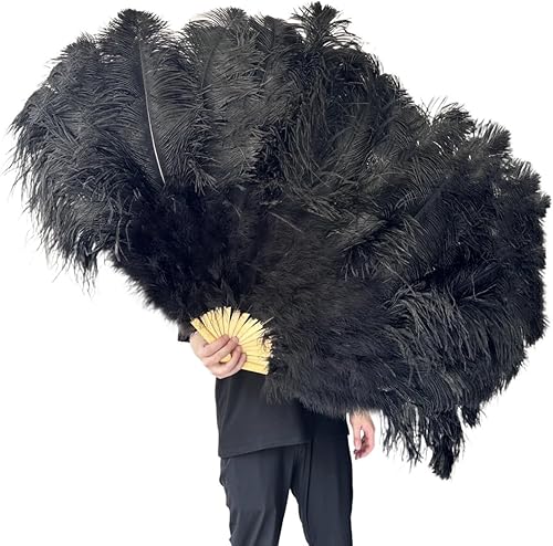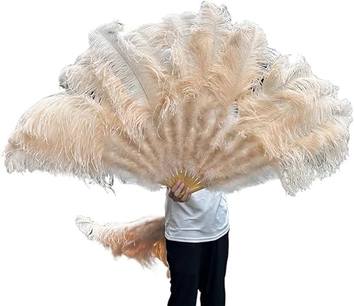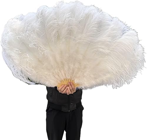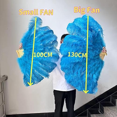 AMEEDA Éventail en Plumes d'oie Grand éventail de Plumes à 13 os, 100CM, 130CM, Pliable à Main, for fête, Carnaval, Spectacle de Danse, décoration(52,100CM 2PCS)