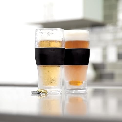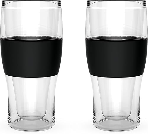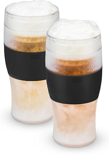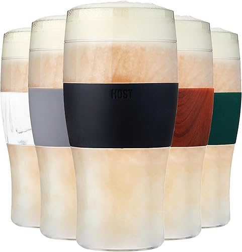 Host Freeze - Lot de 2 verres à bière de 47 cl, verres à pinte à double paroi plastique contenant un gel réfrigérant, Marbré